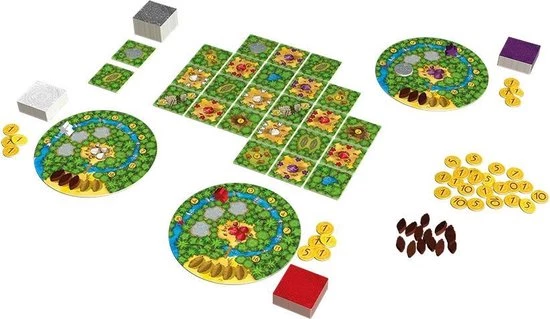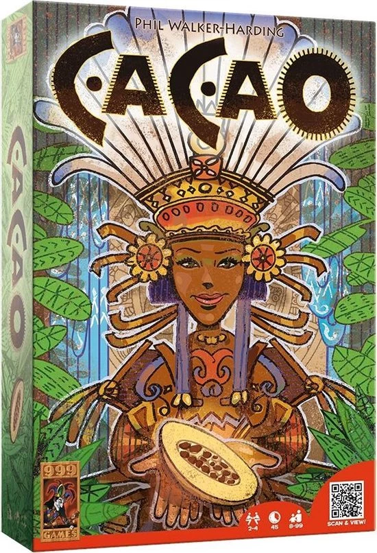 In dit tactische legspel leg je steeds een van je 3 persoonlijke tegels aan een jungletegel op het speelveld. Omdat op alle zijden van zo”n tegel arbeiders staan, doen deze wat de aangrenzende jungletegel aangeeft. Zo kan een arbeider naast een markt cacao verkopen of een arbeider naast een bron water ontvangen. Na elke beurt vul je je hand weer tot 3 tegels aan. Het spel eindigt als alle spelers al hun tegels hebben gelegd. De speler die aan het einde van het spel het meeste rendement uit zijn arbeiders heeft gehaald wint. Cacao is een uitdagend legspel, dat door zijn variabele speelveld altijd anders is. De vele mogelijkheden om tegels te leggen en punten te scoren, zorgen voor ontelbare mogelijke winststrategie?n.