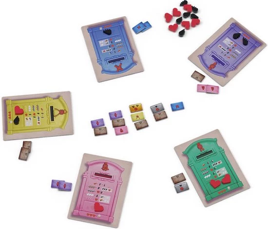 | Verpakkingsinhoud | Inhoud:, 1, zak, 90, brieven, 5, spelerstableaus, 11, gebroken, hartjes, 11, hele, hartjes, spelregels |