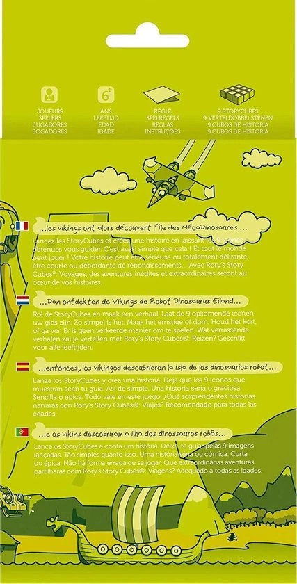 Gooi de dobbelstenen en maak een verhaal rondom de negen zichtbare afbeeldingen. Er is maar één regel: er zijn geen foute antwoorden. Laat je creativiteit dus de vrije loop. Dankzij de onbeperkte mogelijkheden bieden de Story Cubes uren aan speelplezier voor alle leeftijden.