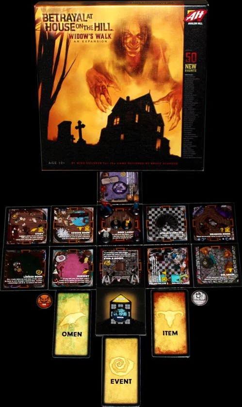 Widow’s Walk is de allereerste uitbreiding voor het populaire bordspel Betrayal at House on the Hill. Er zijn twintig nieuwe kamers aan het huis toegevoegd, waaronder ook het voorheen onbereikbare dak. Daarnaast kom je allerlei nieuwe monsters, items, omens, events en vijftig gloednieuwe haunt scenario’s tegen. Widow’s Walk geeft een geheel nieuwe invulling aan angst en paniek. Stap binnen als je durft. En vertrek zodra je kunt…