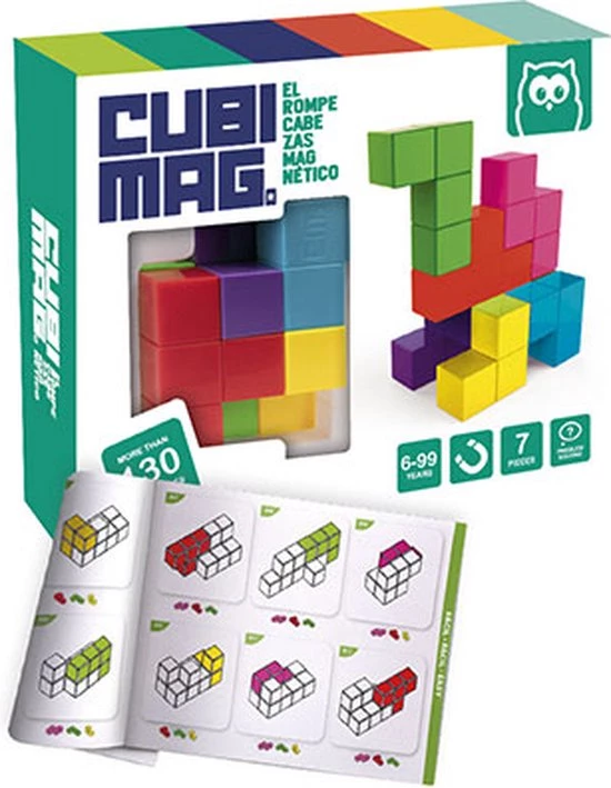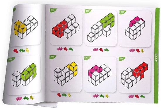 Meer dan 130 verschillende opdrachten kan je in het opdrachtenboekje vinden, gaande van erg simpel tot extreem moeilijk. Een set bestaat uit 7 gekleurde magnetische blokjes. De opdracht toont welk figuur je moet nabouwen. Lijkt eenvoudig, maar deze blokjes zijn magnetisch, en zoals je weet kunnen ze behalve blokjes aantrekken, ook blokjes afstoten, wat het nog net iets moeilijker maakt om te puzzelen.