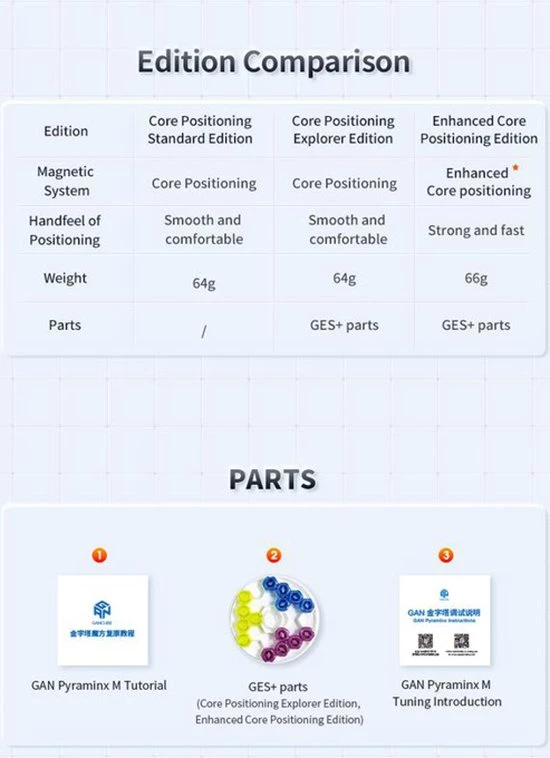 Benieuwd naar de verschillen tussen de Standard-, Explorer- en Enhanced-versies? De standaardversie is de basisversie van deze kubus. Deze wordt geleverd met een set GES-moeren voorge?nstalleerd en kernrandmagneten. De Explorer-versie wordt geleverd met extra GES-moeren. De Enhanced versie wordt geleverd met alle bovenstaande plus magnetische onderdelen.