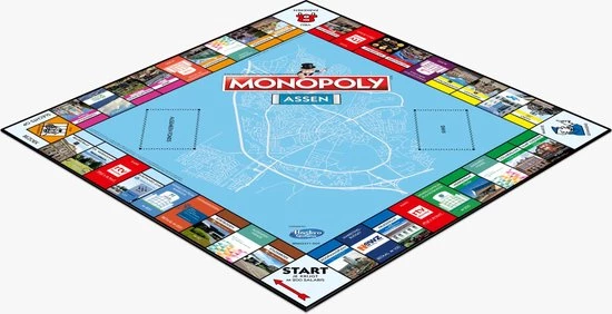 Leef nu als vastgoedmagnaat in Assen. Loop over het bord van de Groningerstraat via het Koopmansplein naar de Vaart Zuidzijde. Word eigenaar van de Markt. Ga Zwemmen in de Bonte Wever aan de stadsbroek. Koop huizen in elke straat, bouw hotels op alle hotspots, investeer en laat het geld maar binnenstromen. Koop, onderhandel, investeer zo veel u wilt, maar blijf wel opletten: Er is maar 1 winnaar!