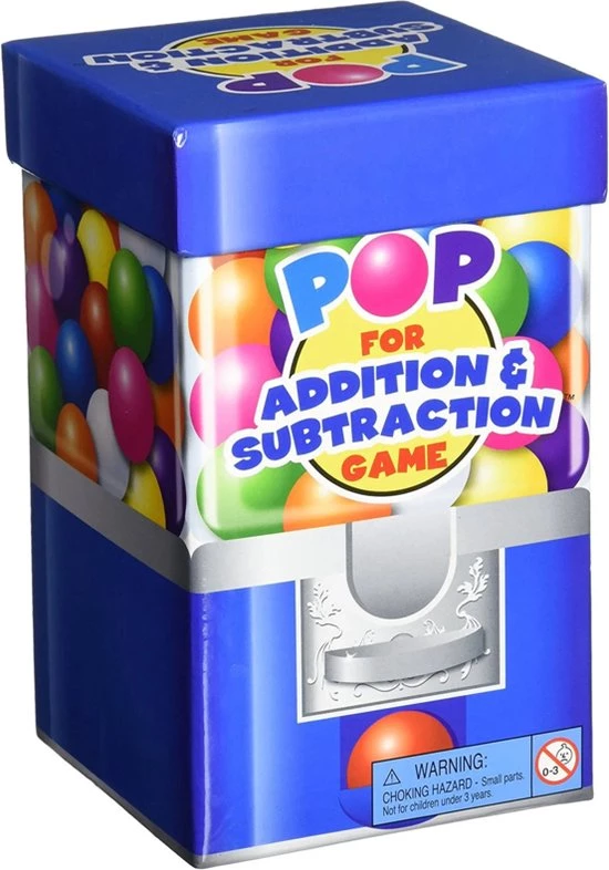 - Inclusief spinner, 90 kwauwgombalkaarten met een som erop en 10 POP-kaarten