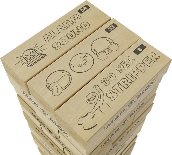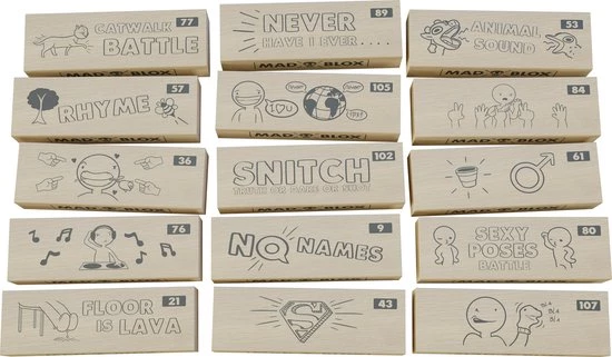Het welbekende ‘Jenga’ spel waarbij je een toren moet bouwen, nu speciaal herontwikkeld met op elke zijde van het blokje een originele opdracht. Haal een blokje uit de toren en kies ??n van de twee opdrachten die op het blokje staan. Ga je de uitdaging aan of koop je het af met een SHOTJE! Inhoud: – 54 blokjes – 10 shot cups – Spelregelboekje – Spel is Engelstalig Drankspel – Gezelschapsspel voor volwassenen – Drunken tower – Do or drink – Party Game – Meer dan 100 opdrachten – Met 10 shot cups.