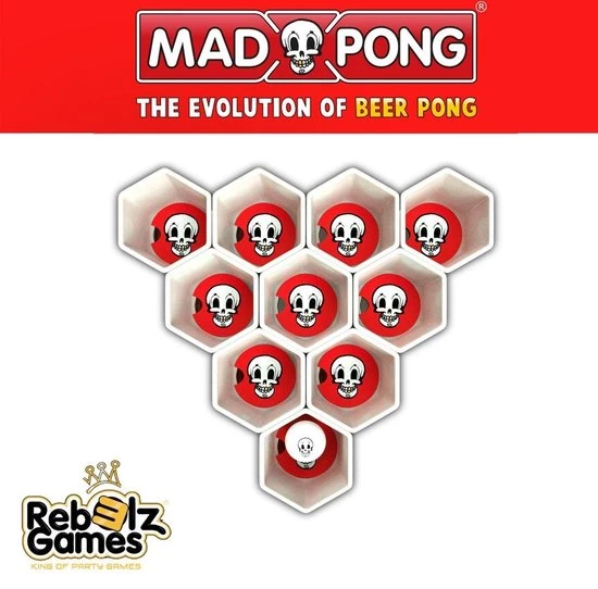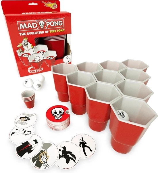 MadPong wordt gespeeld net zoals beer pong alleen elke cup bezit ook een opdrachtkaartje. Als de bal in jouw cup valt dan moet je eerst je drinken opdrinken en daarbij ook een opdracht uitvoeren. Je laat jouw opdrachtkaart aan niemand zien en doe na wat er op de afbeelding staat en iedereen inclusief je eigen teamleden moeten jou na doen. De traagste die dit doet nadoet, moet als straf ook nog een SHOT nemen.