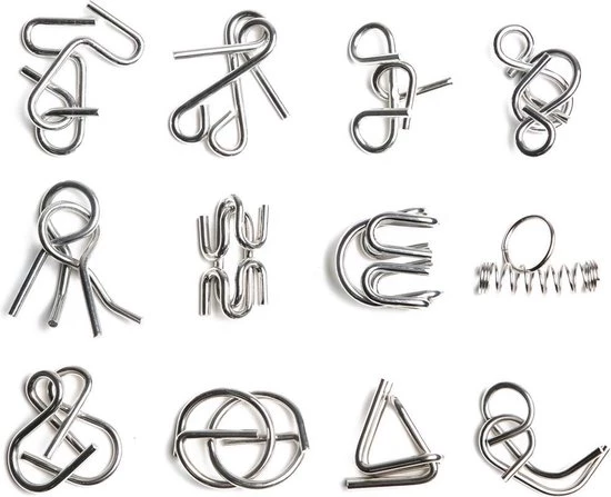 12 verschillende stijlen metalen hersenkrakers. Het hebben van 12 stukjes verspreidt de moeilijkheidsgraad en zorgt voor veel plezier en uitdaging! Het is zo’n geweldig klassiek spel dat nooit oud wordt! De puzzels vari?ren van vrij eenvoudig tot moeilijk. Een geweldig intelligentiespel om denk- en manipulatief vermogen te ontwikkelen. Ontworpen voor kinderen, tieners, studenten en volwassenen. Probeer dit nieuwe strategiespel in uw vrije tijd om uw ogen te beschermen tegen schade door de display van elektronische producten. De gladde randen voorkomen letsels aan de handen en de vernikkelde afwerking is roestvrij. De puzzels zullen na lang gebruik nog steeds stralen en als nieuw eruit zien.