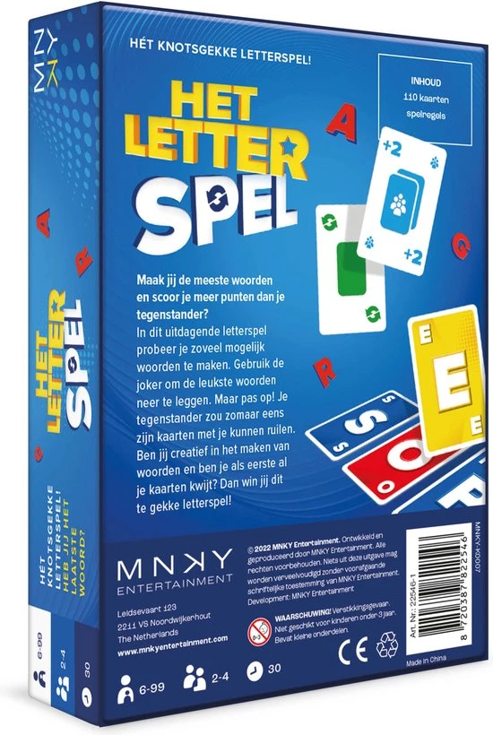 In dit uitdagende letterspel probeer je zoveel mogelijk woorden te maken. Gebruik de joker om de leukste woorden neer te leggen. Maar pas op! Je tegenstander zou zomaar eens zijn kaarten met je kunnen ruilen. Ben jij creatief in het maken van woorden en ben je als eerste al je kaarten kwijt? Dan win jij dit te gekke letterspel!