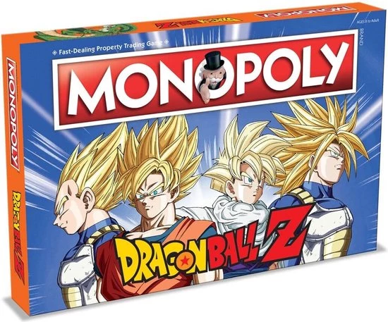 Speciale uitgave van Monopoly in stijl van Dragon Ball Z. De Z Fighters bevinden zich in een epische strijd om ontroerend goed. Rekruteer legendarische krijgers, zoals GOKU, VEGETA en GOHAN om te helpen bij dit avontuur van Dragon Ball Z! Grijp de kans om de rijkste jager ter wereld te worden. Vrienden zoals BULMA en MASTER ROSHI kunnen je helpen op weg naar grootheid! Kun je alle vastgoed verzamelen en de beste zijn?