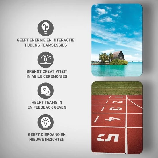 Dit Stap1 Agile Fotospel bestaat uit 50 inspirerende afbeeldingen. Deze afbeeldingen zijn geselecteerd op het vermogen om associaties op te roepen zoals onmacht, overwinning, teamgevoel, angst, vertrouwen en vele andere. Deze set is daardoor ideaal om te gebruiken bij heisessies, kennismaking, teambuilding, retrospectives en andere Agile ceremonies.