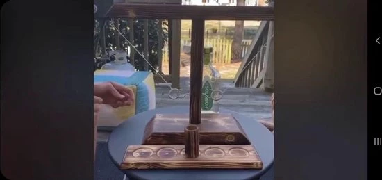 Materiaal: spel is gemaakt van hout, de bijgeleverde bevestingsringen en haken zijn van metaal en koordjes van plastic.