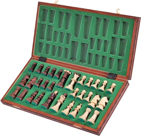 | Verpakkingsinhoud | Een, uitklapbaar, houten, schaakspel, 32, schaakstukken. |