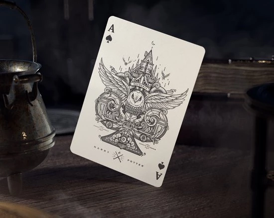 Een set van 4 verschillende premium speelkaarten met al je favoriete personages in vier betoverende kleurenedities, die de vier takken van Hogwarts vertegenwoordigen: Gryffindor, Slytherin, Ravenclaw, and Hufflepuff! Beleef de meest memorabele momenten van de iconische serie elke keer dat de kaarten tevoorschijn komen om te spelen. De buitenverpakking is simpelweg magisch. Sierlijke bladgoud met opvallende folie accenten. Nauwkeurige, uiterst gedetailleerde reli?fdruk. Een doos die luxueus aanvoelt en vanuit elke hoek prachtig oogt. De kaarten zelf zijn gemaakt in de VS, gedrukt op FSC-gecertificeerd papier afkomstig van duurzame bossen, plantaardige inkten en op zetmeel gebaseerde laminaten. Harry Potter-speelkaarten bevatten volledig op maat gemaakte illustraties, met azen, jokers, doosontwerp en hofkaarten die rechtstreeks zijn ge?nspireerd op favoriete personages en gebeurtenissen van fans in de tovenaarswereld.