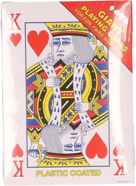 1x Pakje XL speelkaarten rood gigantisch 17 x 12 cm. Speelkaarten met een klassieke bedrukking. Deze kaarten zijn ideaal om te gebruiken tijdens feestjes. Materiaal: Karton. Kaartspellen – Speelkaarten – Poker/pokeren.