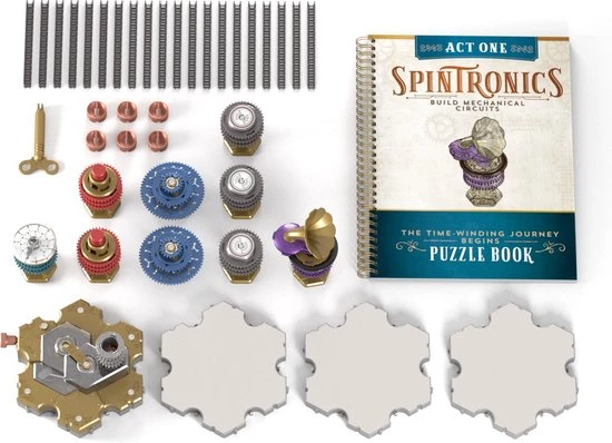 Spintronics is een nieuw spel van de makers van Turing Tumble waarbij spelers (van 8 tot 99 jaar) mechanische schakelingen bouwen om puzzels op te lossen. Spelers voelen zelf de kracht van spanning en zien de stroom lopen, terwijl ze op een tastbare en bijzonder intu?tieve manier de wereld van elektronica ontdekken. Ze doen dit met behulp van de allereerste fysieke evenknie van elektronica. Het is leuk, fascinerend, gemakkelijk te leren en onweerstaanbaar om te spelen.