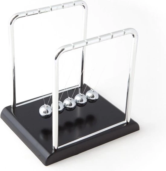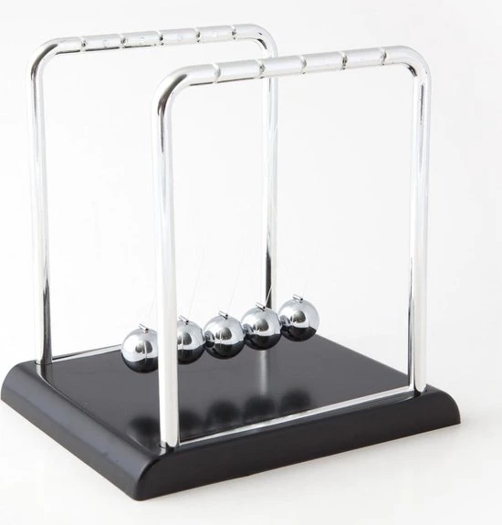 De Newton?s Cradle is een prachtige decoratie, maar ook blijvend fascinerend om naar te kijken. Kijk wat er gebeurt zodra je een balletje tegen de rij laat stoten of meerdere tegelijk! De beweging van de metalen balletjes is een mooie visualisatie van de wet van Newton van actie en reactie. Verrassend om naar te kijken en bovendien heel rustgevend!