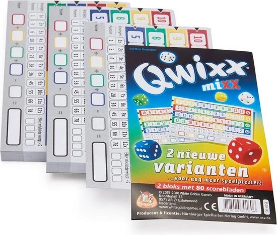 In deze verpakking bevinden zich 2 nieuwe varianten scoreblocks voor nog meer spelplezier. De scorebloks zijn te gebruiken voor het Qwixx dobbelspel ?n het Qwixx kaartspel! De regels veranderen niet, maar de spelbeleving wel.